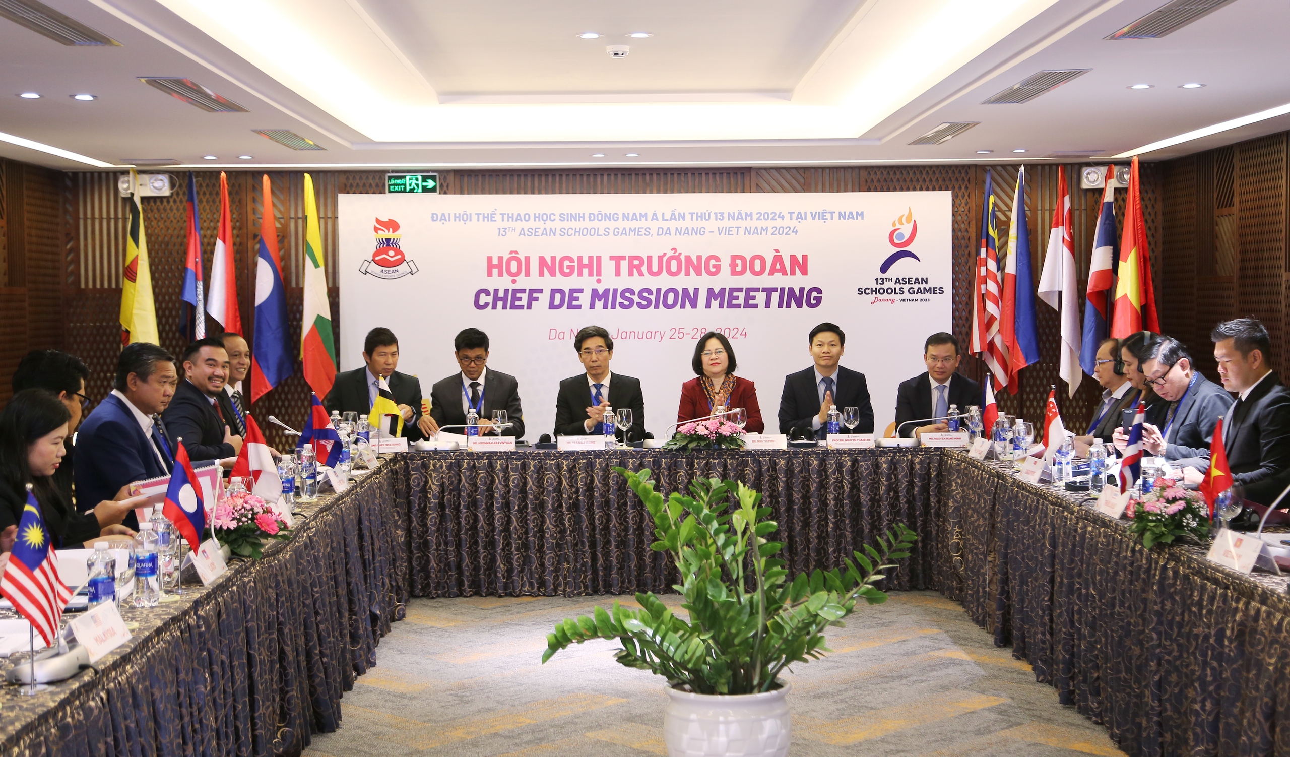 Ngày 26.1, UBND TP.Đà Nẵng phối hợp với Bộ GD-ĐT tổ chức Hội nghị trưởng đoàn thể thao học sinh Đông Nam Á lần thứ 13. Tham dự hội nghị có bà Ngô Thị Minh, Thứ trưởng Bộ GD-ĐT; ông Trần Chí Cường, Phó chủ tịch UBND TP.Đà Nẵng; đại diện trưởng đoàn 11 quốc gia.