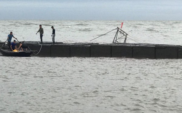 Tàu cá QN-3457 sau khi đâm vào đê biển chìm chắn sóng tại Lạch Huyện, H.Cát Hải (TP.Hải Phòng) đã bị chìm nghỉm, khiến vợ chồng chủ tàu Xá và con trai 18 tuổi mất tích