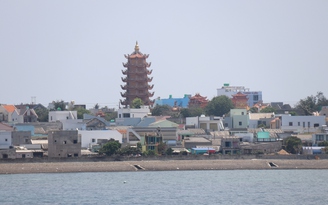 Ngôi chùa cổ Linh Quang trên đảo Phú Quý nhìn từ biển vào