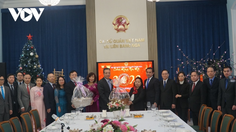 Đại sứ cùng đại diện cán bộ, nhân viên hai Đại sứ quán Việt Nam và Lào tại Nga chụp ảnh lưu niệmĐại sứ Việt Nam tại Nga Đặng Minh Khôi trân trọng cảm ơn những lời chúc năm mới tốt đẹp và tình cảm của Đại sứ quán Lào tại Nga. Đại sứ Đặng Minh Khôi khẳng định quan hệ hợp tác Việt – Lào trong năm 2022 phát triển rất tốt đẹp và bày tỏ mong muốn rằng trong năm 2023, quan hệ hai nước sẽ phát triển mạnh mẽ hơn, kết nối chặt chẽ hơn kinh tế Việt Nam với Lào. Đại sứ Đặng Minh Khôi cũng bày tỏ vui mừng về kết quả chuyến thăm Lào tốt đẹp mới đây của Thủ tướng Việt Nam Phạm Minh Chính và hy vọng chuyến thăm sẽ là động lực thúc đẩy quan hệ đặc biệt Việt – Lào ngày càng phát triển hơn nữa.