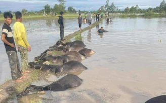 Người dân ở Đắk Lắk ngậm ngùi nhìn đàn trâu chết ngoài đồng do nước lũ dâng cao