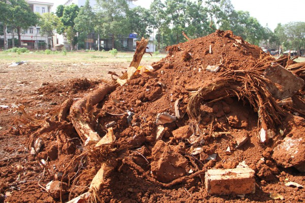 Nhiều rễ cây sao bị cắt đứt còn vương vãi trên mặt đất