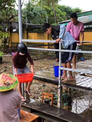 Thầy, cô Trường THPT Nguyễn Huệ, P.Tuy Hòa, Đắk Lắk (TP.Tuy Hòa, Phú Yên) dọn dẹp phòng học sau lũ lụt