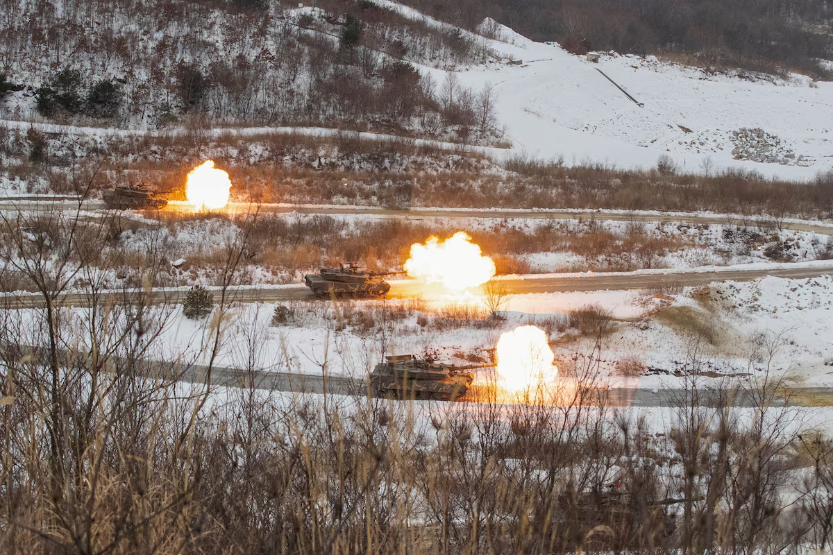 Hình ảnh trong cuộc tập trận Hàn – Mỹ gần khu phi quân sự ngăn cách 2 miền Triều Tiên, ở Pocheon, Hàn Quốc.