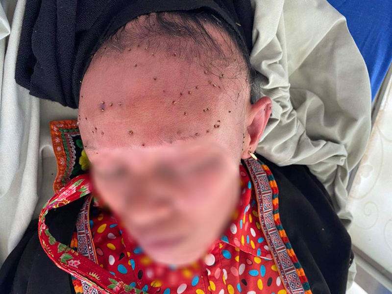 Người nhà bệnh nhân cho biết: Bệnh nhân bị cả đàn ong khoái tấn công khi đang đi làm cỏ.
