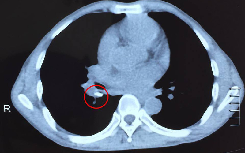 Bệnh nhân nhanh chóng được đặt nội khí quản kiểm soát đường thở. Chụp sọ não ghi nhận khối máu tụ ngoài màng cứng đỉnh phải, lượng rất nhiều, chèn ép nhu mô não, gây thoát vị não một trong những dấu hiệu nặng gây nguy kịch đến tính mạng bệnh nhân.