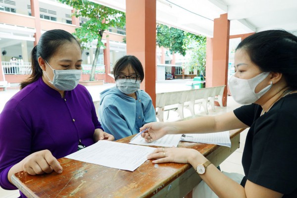 Phụ huynh làm thủ tục nhập học cho con vào lớp 6 |