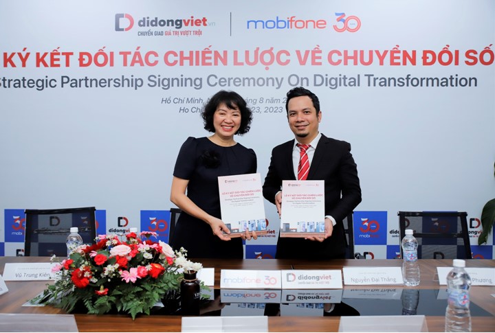 Đại diện Di Động Việt và MobiFone ký kết hợp tác chuyển đổi số