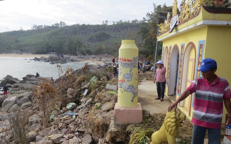 Phía trước miếu bị sóng bổ gây hư hại Ảnh: Trang Thy