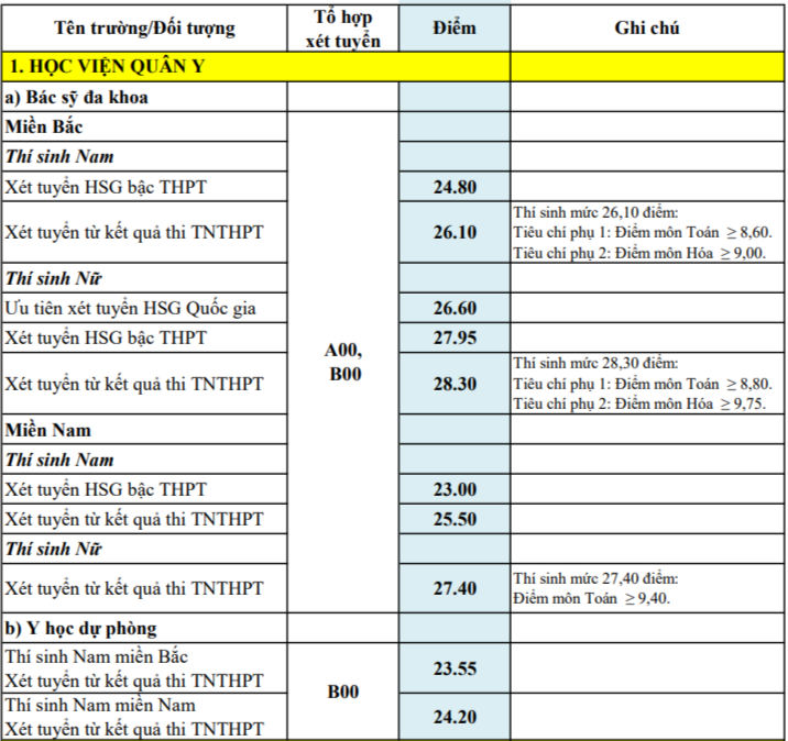 Ban Tuyển sinh quân sự Bộ Quốc phòng đã quyết định quy định điểm tuyển sinh đào tạo đại học, cao đẳng quân sự vào các học viện, nhà trường quân đội năm 2022, với tất cả các phương thức tuyển sinh.