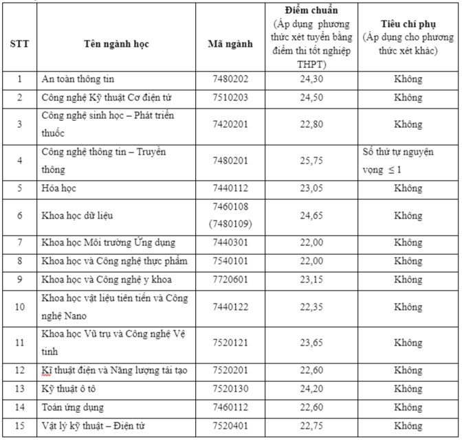 Trường ĐH Khoa học và Công nghệ Hà Nội (còn gọi là Trường ĐH Việt Pháp) đã chính thức công bố điểm chuẩn trúng tuyển các chương trình đại học năm học 2022 – 2023 theo phương thức đăng ký xét tuyển sử dụng kết quả kỳ thi tốt nghiệp THPT năm 2022 qua cổng thông tin tuyển sinh của Bộ GD-ĐT.