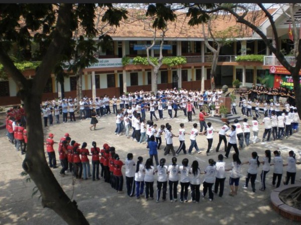 Học sinh tham gia hoạt động tập thể trong Trường THPT Hermann Gmeiner (Q.Gò Vấp, TP.HCM)