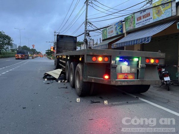 Khi đến Depot G-Fortune Thủ Đức (phường Linh Xuân, TP Thủ Đức) thì gặp nạn tử vong bên hông chiếc xe đầu kéo đang đậu ven đường, chiếc xe máy bể nát.