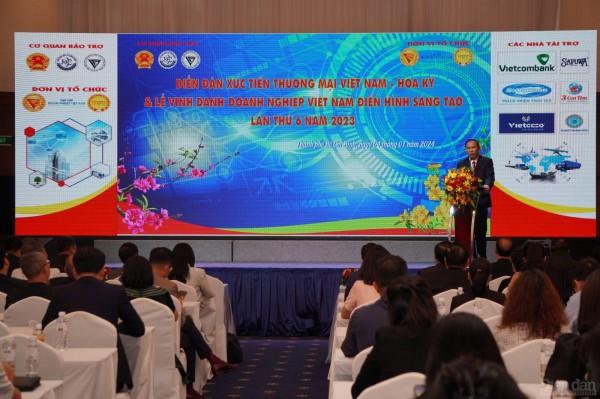 Diễn đàn “Xúc tiến Thương mại Việt Nam Hoa Kỳ & Lễ Vinh danh Doanh nghiệp Việt Nam điển hình sáng tạo năm 2023” do Trung tâm Nghiên cứu Phát triển Thương hiệu Việt, Liên hiệp các Hội KH&KT, phối hợp cùng Hiệp hội Doanh nghiệp Khoa học và Công nghệ Việt Nam tổ chức – Ảnh: Đình Đại.