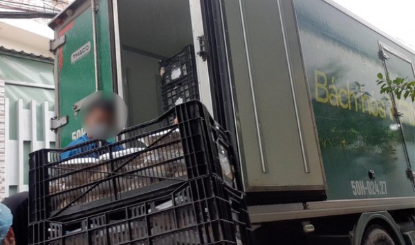 Xe Bách Hóa Xanh đến lấy nấm tại Công ty Đông A (ảnh: Bông Mai)