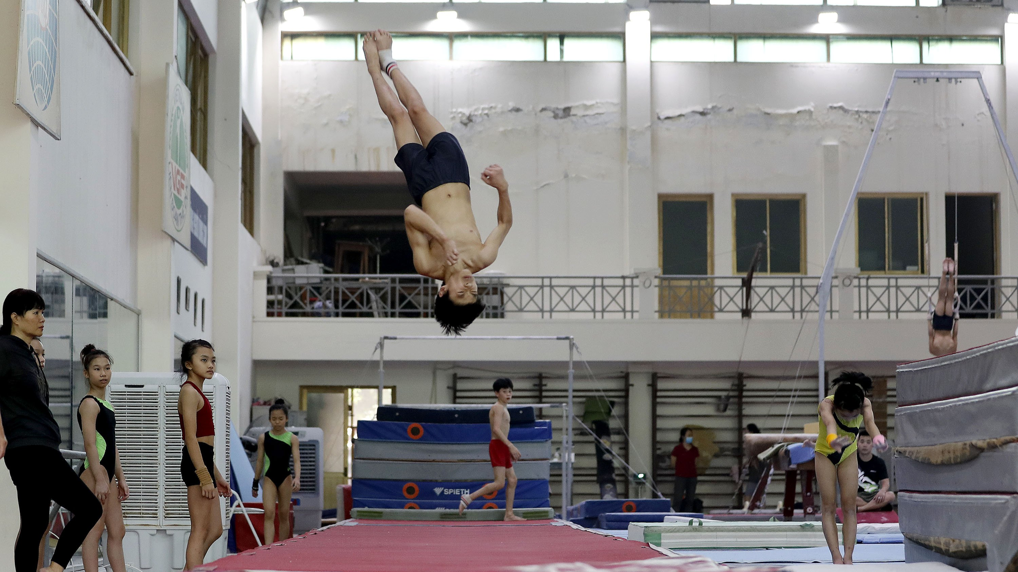 VĐV thể dục dụng cụ tập luyện tại Trung tâm huấn luyện thể thao quốc gia Hà Nội |