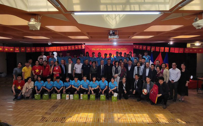 Ngay khi có mặt tại sân bay, đoàn lãnh đạo LĐBĐVN và đội tuyển bóng đá nữ đã được ông Đinh Toàn Thắng – Đại sứ đặc mệnh toàn quyền Việt Nam tại Pháp, bà Lê Thị Hồng Vân – Trưởng phái đoàn Unesco cùng đông đảo Cộng đồng doanh nghiệp, các sinh viên và cán bộ nhân viên Sứ quán tổ chức đón trang trọng.