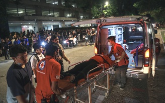 Các nhân viên y tế đưa một người bị thương vào xe cấp cứu ở thành phố Cebu miền trung Philippines tối 30.9 Ảnh: AP