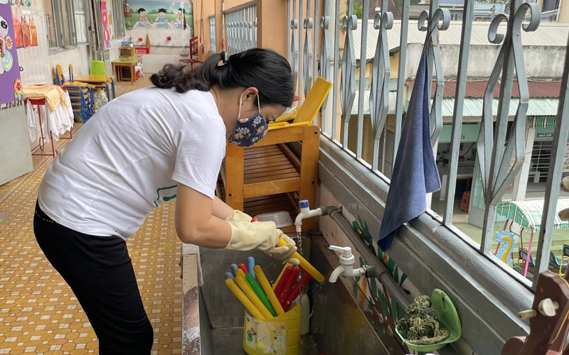 Để phòng, chống bệnh tay chân miệng đối với khối trường mầm non, tiểu học cần tăng cường vệ sinh lớp học, đồ chơi, khăn mặt của học sinh… Đồng thời, hướng dẫn giáo viên các biện pháp phòng, chống bệnh tay chân miệng như: Rửa tay cho trẻ trước khi ăn và sau khi đi vệ sinh; thường xuyên lau rửa toàn bộ sàn nhà bằng chất tẩy rửa, đồ chơi, đồ dùng của trẻ, bàn, ghế bằng dung dịch sát khuẩn. Không cho trẻ ăn bốc, mút tay, ngậm mút đồ chơi; không cho trẻ dùng chung khăn ăn, khăn tay, vật dụng ăn uống như ly, chén, đĩa, muỗng, đồ chơi chưa được khử trùng.