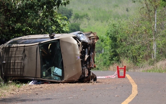 Ghi nhận của phóng viên, đoạn đường nơi chiếc xe bị tai nạn khá cong cua, đường hẹp, chiếc xe sau khi bị lật nghiêng thì phần đầu đã biến dạng, hư hỏng nặng.