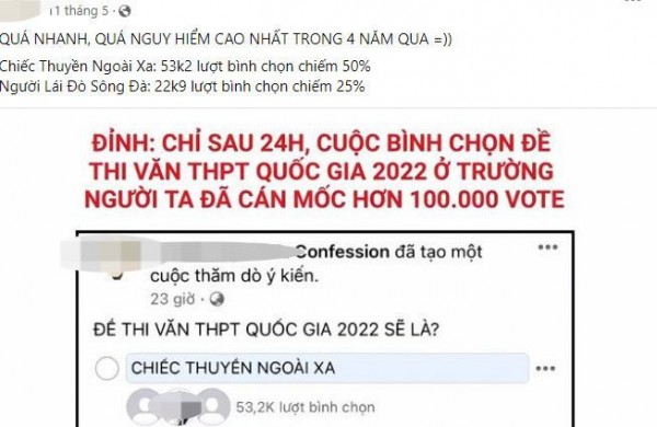 Một fanpage với 3,2 triệu thành viên cũng thực hiện thăm dò ý kiến, đoán đề thi văn tốt nghiệp THPT 2022 |