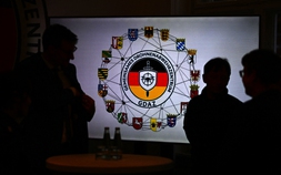 Logo của trung tâm chống UAV liên hợp (GDAZ) được trình chiếu tại cơ quan cảnh sát liên bang Đức ở Berlin ngày 17.12 ẢNH: AFP