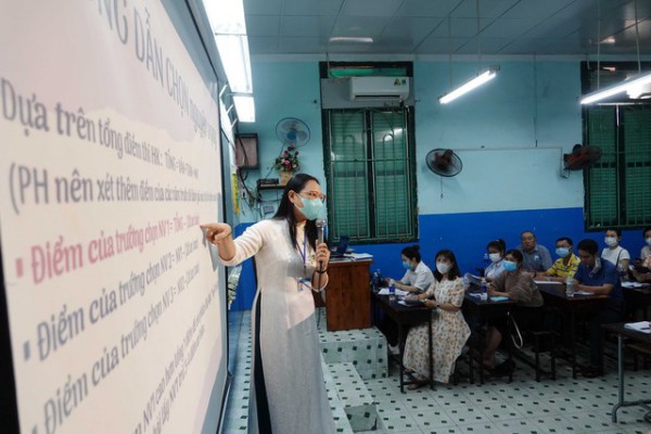 Một trường THCS ở TP.HCM họp phụ huynh để tư vấn về thi vào lớp 10