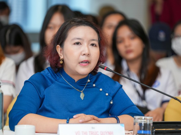 Cô Võ Thị Trúc Quỳnh trao đổi tại sự kiện
