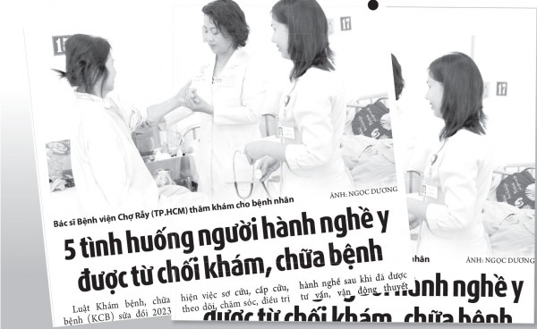 “Đã từng xảy ra nhiều trường hợp bệnh nhân (BN), người nhà hành hung bác sĩ (BS), nhân viên y tế khiến dư luận bức xúc. Như vụ xảy ra vào tối 27.7.2022: BS T. (công tác tại Khoa Cấp cứu, BV Nhân dân Gia Định) đã bị người nhà BN ngoài mắng mỏ, tấn công, bóp cổ, còn đe dọa sẽ chặn đường… Luật KCB sửa đổi 2023 đã có quy định về “Quyền từ chối KCB”, tôi cho là hết sức thiết thực và tôi hoàn toàn ủng hộ. Rất mong luật được phổ biến rộng rãi, để mọi người biết và chấp hành tốt”, bạn đọc (BĐ) Văn Anh cho biết.