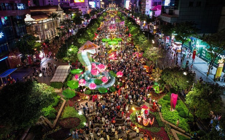 Hàng ngàn người dân TP.HCM, du khách nước ngoài tham quan đường hoa Nguyễn Huệ Tết Ất Tỵ 2025 Ảnh: Nhật Thịnh