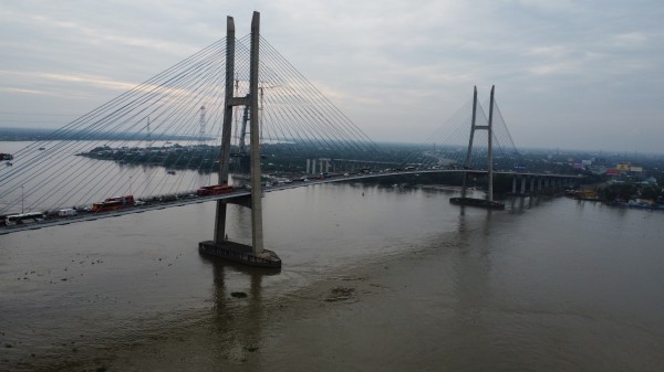 Đông đúc phương tiện trên cầu Mỹ Thuận chiều mùng 6 tết |