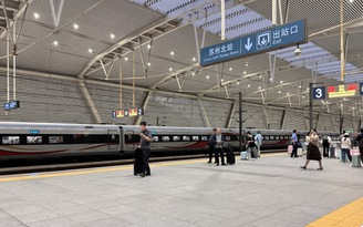 Hành khách tại ga Tô Châu trên tuyến đường sắt cao tốc Bắc Kinh – Thượng Hải của Trung Quốc Ảnh: Ngọc Mai