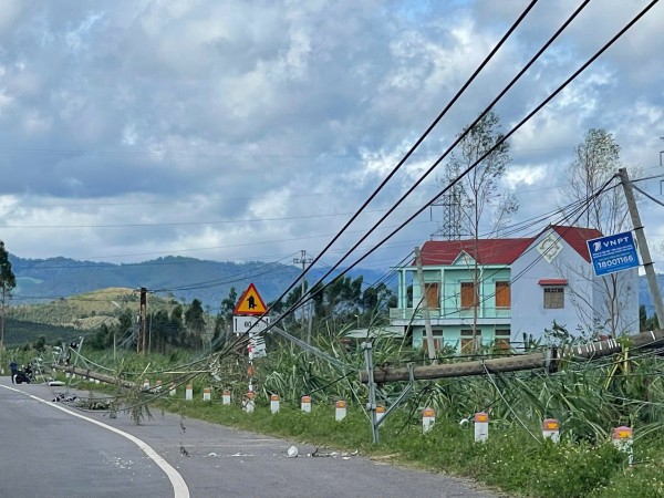 Nhiều trụ điện trên tuyến quốc lộ 19 đoạn qua xã Đăk Pơ bị gãy đổ