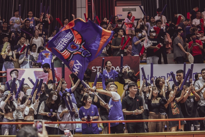 Fan của Thang Long Warriors vẫn gây ấn tượng với màn “phủ đỏ” nửa khán đài. Tuy nhiên, người hâm mộ đến từ đội khách Hanoi Buffaloes cũng không hề kém cạnh so với đội chủ nhà. Họ đều chuẩn bị sẵn rất đầy đủ từ trang phục đến phụ kiện để tiếp thêm sức mạnh cho thần tượng. Thậm chí có đôi khi, fan Hanoi Buffaloes còn lấn át cả tiếng hò reo của đội chủ nhà khi các cầu thủ “Trâu Thủ đô” ghi bàn.