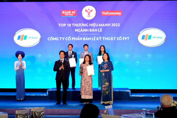 Vào chiều ngày 12/10/2022, Tạp chí Kinh tế Việt Nam VnEconomy – Vietnam Economic Times đã tổ chức Lễ vinh danh Thương hiệu mạnh Việt Nam năm 2022. Công ty Cổ phần Bán lẻ Kỹ thuật số FPT (FPT Retail) vinh dự nằm trong Top 10 Thương hiệu mạnh – Ngành Bán lẻ lần thứ 9 liên tiếp.