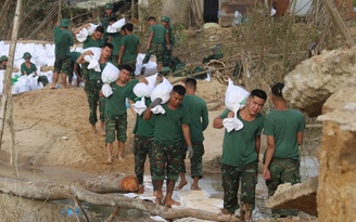 Bộ đội giúp dân khắc phục bão lũ tại thôn Vân Hội, xã Tuy Phước, Gia Lai