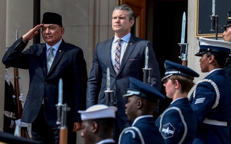 Bộ trưởng Quốc phòng Mỹ Pete Hegseth (phải) chủ trì lễ đón tiếp dành cho Bộ trưởng Quốc phòng Indonesia Sjafrie Sjamsoeddin tại Lầu Năm Góc vào ngày 13.4.2026 Ảnh: Reuters