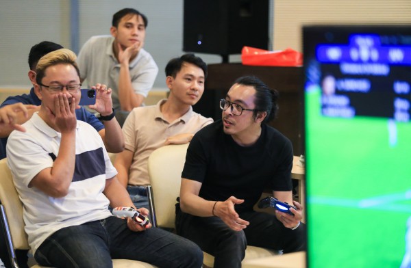 Suốt nhiều tiếng đồng hồ, hội trường lầu 3 Báo Thanh Niên đã trở thành một ngày hội bóng đá và thể thao điện tử hấp dẫn, nhờ sự hoạt ngôn của MC Trí Viễn (FPT) và Tuấn Anh của Báo Thanh Niên.