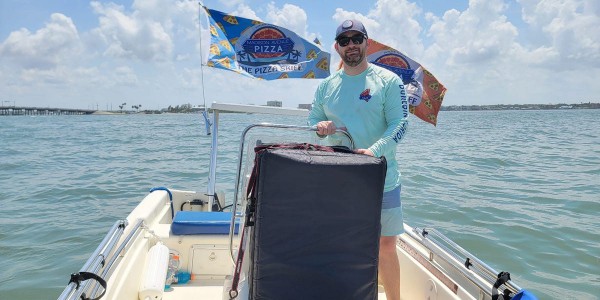 Ông lái chiếc tàu ra vịnh Tampa Bay, đi qua những hòn đảo nhỏ, đội một chiếc mũ hoa hòe, cầm loa phóng thanh mời gọi mọi người mua bánh pizza giá 20 USD của mình. Với hình ảnh này, ông được gọi là Anh Chàng Lái Tàu Bán Pizza (Pizza Skiff Guy) ở Tampa Bay.