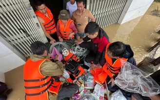 Đội cứu hộ SOS 38 Hà Tĩnh mang nhu yếu phẩm và thiết bị sạc điện vào vùng lũ