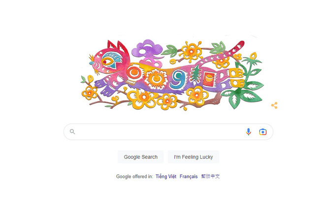 Nhân dịp Tết Nguyên đán, Google đã cập nhật ảnh đại diện trên trang chủ bằng một doodle đặc biệt. Đáng chú ý, tại khu vực Việt Nam, gã khổng lồ tìm kiếm đã dành tặng riêng doodle với hình con mèo để chào mừng năm mới Quý Mão 2023.