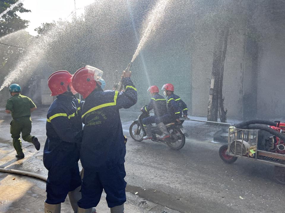 Nhận được tin báo, Đội Cảnh sát phòng cháy, chữa cháy và cứu nạn, cứu hộ, Công an huyện Hoài Đức đã điều động 5 đội chữa cháy cơ sở thuộc các xã liền kề tham gia làm nhiệm vụ, đồng thời điều động phương tiện và cán bộ, chiến sĩ phối hợp Đội Phòng cháy, chữa cháy và cứu nạn, cứu hộ khu vực 2 (Công an thành phố Hà Nội) nhanh chóng tiếp cận hiện trường.