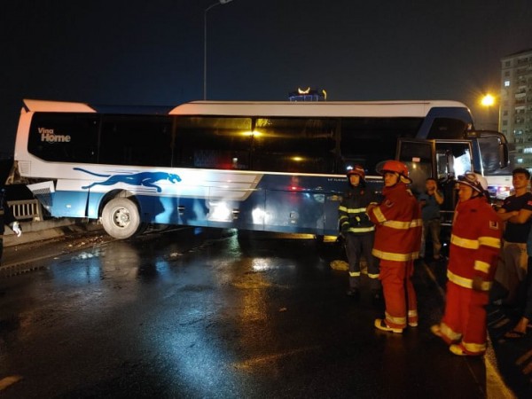 Xe khách đâm đổ khoảng 5m lan can, một phần đuôi xe nằm ra phần ngoài đường cách mặt đất hơn 10m. Trên xe lúc này có khoảng 30 hành khách. Vụ việc làm ùn tắc giao thông toàn tuyến trong nhiều giờ.