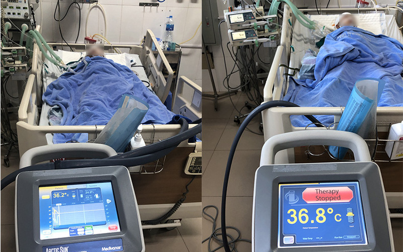 Bác sĩ Nguyễn Sỹ Mạnh, Khoa Hồi sức tích cực cho biết: Hạ thân nhiệt chỉ huy có thể thực hiện bằng hai cách là hạ thân nhiệt nội mạch hoặc hạ thân nhiệt bề mặt. Trường hợp bệnh nhi này, quá trình điều trị hồi sức tích cực hậu phẫu có tình trạng sốt cao không ngừng gây tăng tổn thương não nặng nề. Vì vậy, phương pháp hạ thân nhiệt bề mặt sẽ giúp não giảm phù, viêm, cải thiện tưới máu và cung cấp oxy, do đó, tăng cơ hội sống sót cho bệnh nhi, giúp não bộ phục hồi ý thức, vận động tốt hơn.