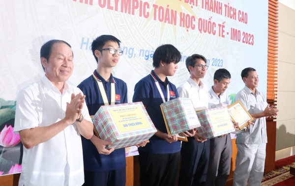 Ngoài ra, TP.Hải Phòng thưởng 180 triệu đồng cho tập thể giáo viên dạy, ôn thi Olympic toán học và thưởng 90 triệu đồng cho Ban giám hiệu Trường THPT chuyên Trần Phú.