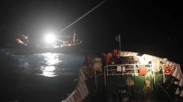 Tàu hải quân kéo tàu cá về bờ |