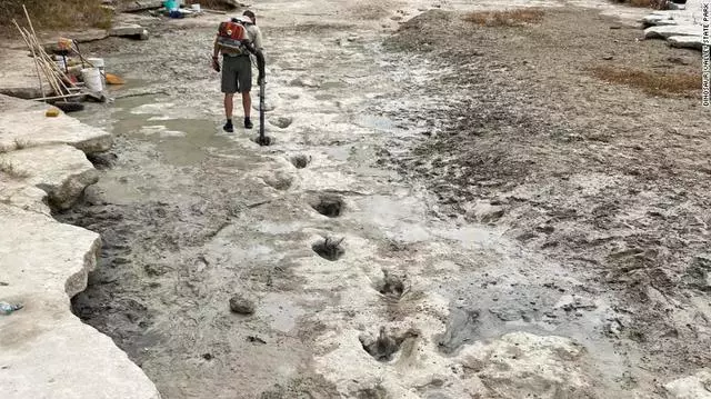 Hạn hán quá mức vào mùa hè năm nay đã khiến một con sông trong công viên khô cạn hoàn toàn và làm lộ ra các dấu vết từ thời kỳ khủng long.