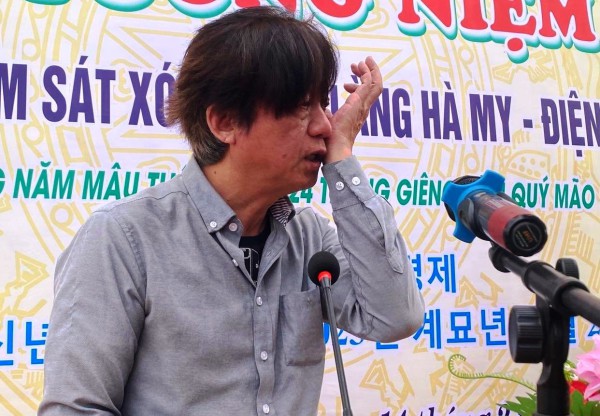 Ông Kim Chang Sup, Trưởng đoàn Quỹ Hòa bình Hàn – Việt, rơi nước mắt khi đọc thư xin lỗi