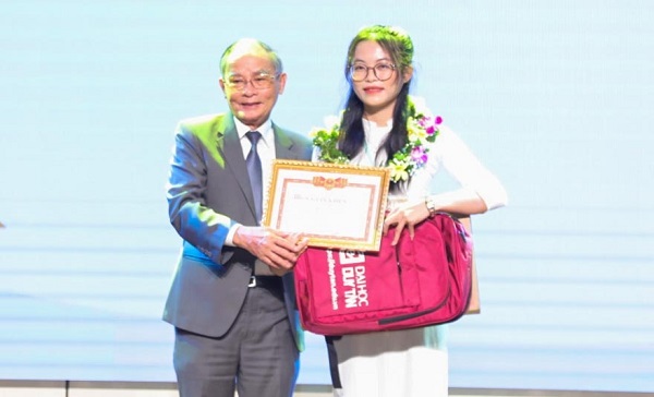 Phần thưởng dành cho nữ thủ khoa năm 2022 là suất học bổng toàn phần và 1 máy tính xách tay.