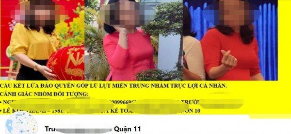 Bên cạnh hình ảnh, thông tin cá nhân của thành viên ban giám hiệu thì tài khoản mạo danh tố cáo “nhóm đối tượng này đã lợi dụng, hình ảnh, chức danh để kêu gọi phụ huynh và các nhóm thiện nguyện quyên góp từ thiện lên đến hàng trăm triệu đồng. Ăn cắp hình ảnh trẻ em khuyết tật, người già, lũ lụt… để trục lợi ăn chia nhau”.